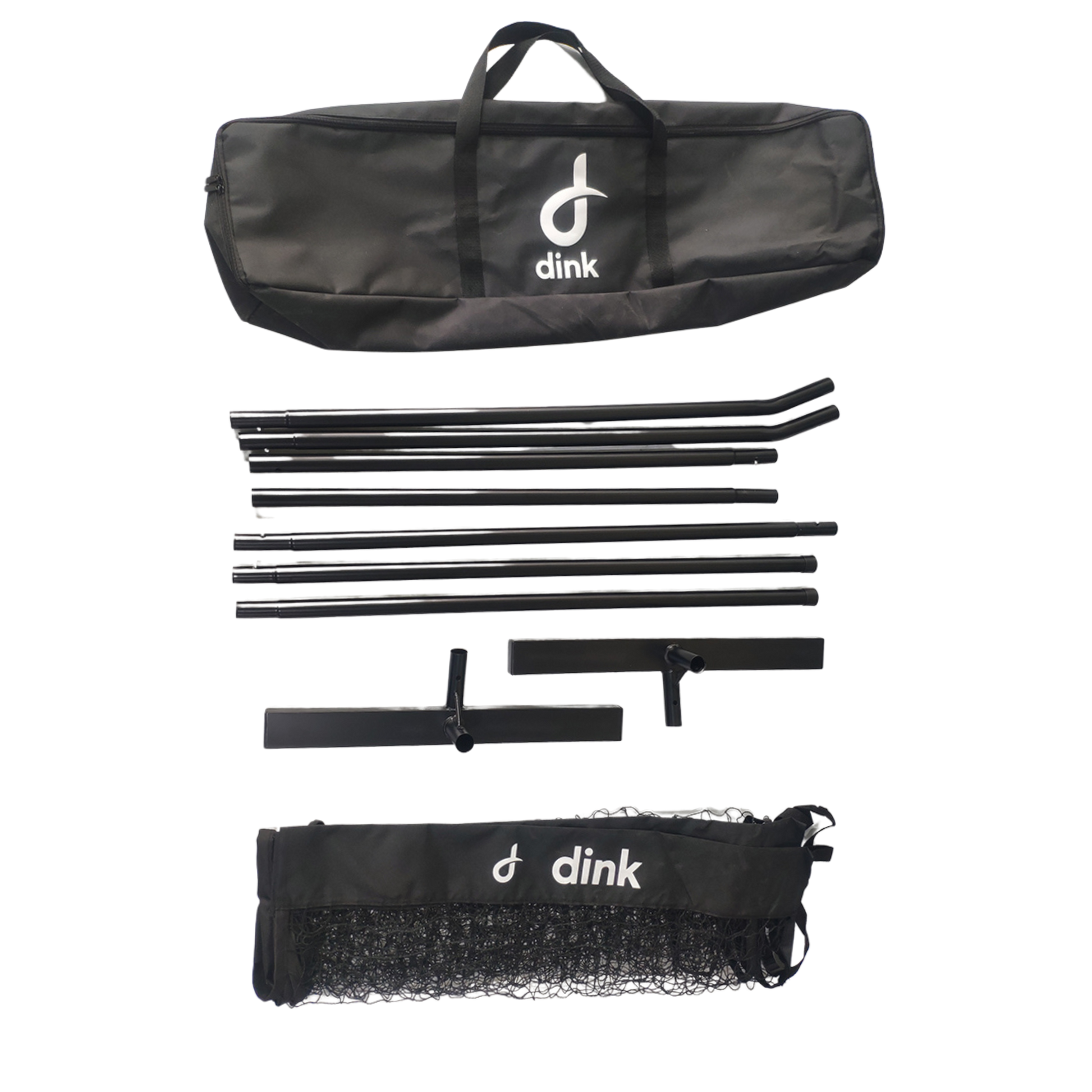The Dink Portable Pickleball Net allows you to set up games anywhere and was made with all levels of players in mind. It comes with its own carry bag and can be set up or broken down within minutes. Suitable for both indoors and outdoor. Comes with assembly instructions and carry bag for easy transportation & storage